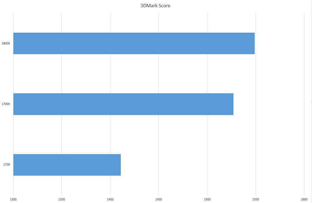 3DMark is een test waarbij een plaatje moet worden verwerkt(renderen). Dit is een goede test voor de Ryzen processoren, omdat dit voornamelijk de processor gebruikt.