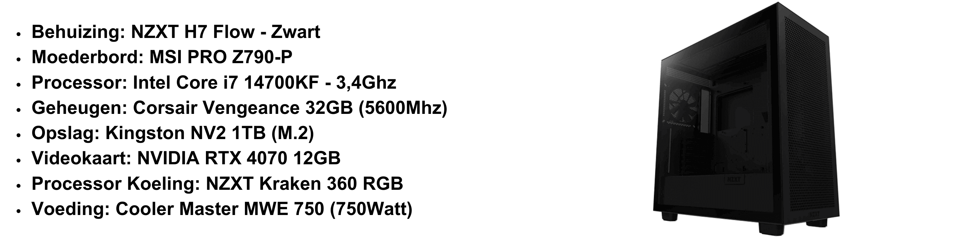 Met een Intel 14HT Generatie en DDR5 bevat deze configuratie splinternieuwe componenten die recentelijk op de markt zijn verschenen, waaronder de processor en het RAM-geheugen. Door te investeren in de nieuwste technologieën, ben je "toekomstbestendig". Dit betekent dat je pc niet snel zal verouderen, omdat deze is uitgerust met de nieuwste hardware en prestatieverbeteringen. Hierdoor kun je langdurig genieten van krachtige prestaties en hoef je minder snel upgrades uit te voeren.