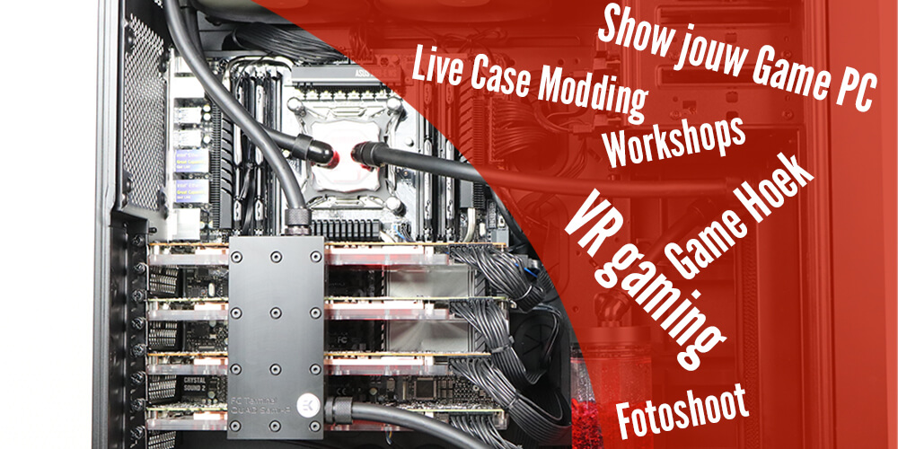 Neem jouw trots mee en laat het zien aan anderen. Er is genoeg plaats om jouw systeem neer te zetten en er is gedacht aan bewaking, wanneer je even wilt gamen. Je kunt er voor kiezen om jouw systeem mooi op de foto te zetten, er is een speciale ruimte ingericht waar jouw Game PC even het model is. Ook zijn er Workshops, leer hoe jij jouw eigen waterkoeling systeem in elkaar zet met HardTubes en/of kies voor de workshop cable sleeving.
